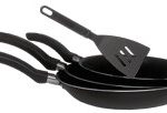 Jogo de frigideira antiaderente francesa vinho com espátula – tamanho 18 ao 22 – Ref. 767