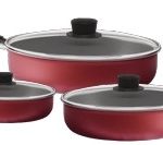 Jogo de frigideira reta antiaderente preta sem tampa – tamanho 18 ao 22 – Ref. 3836